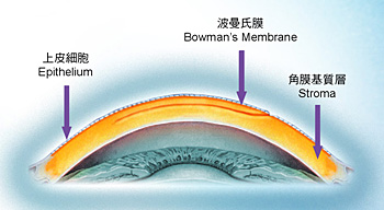 - 将角膜瓣掀开,再利用激光於角膜基层上进行打磨。