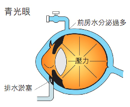 一般青光眼成因是眼內壓過高,因而壓壞了眼部視神經,引致視力衰退和視野缺損。