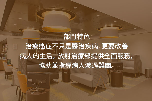 养和医院放射治疗部致力提供优质服务和卓越护理。本部门同事通力合作,全力为病人提供最佳谘询与治疗服务,协助病人获得最佳疗效。