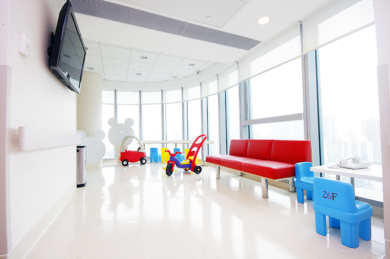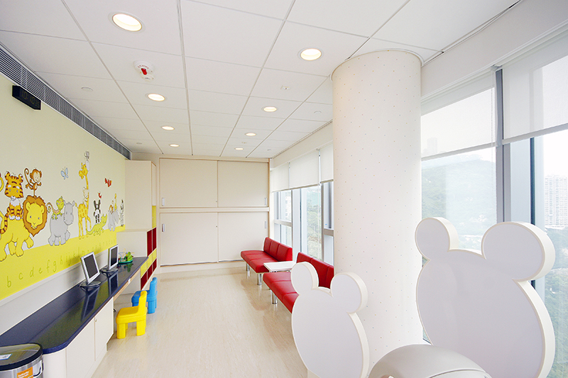 儿科病室划分成私家病室、半私家病室及普通病室三种,全部都开扬宽敞,更装有落地玻璃窗,令室内阳光充沛。本层治疗室设备齐全,可进行注射及穿刺等一般医疗程序。有需要的儿童可於睡眠测试室进行多频道睡眠测试,以诊断是否患上阻塞性睡眠窒息症。