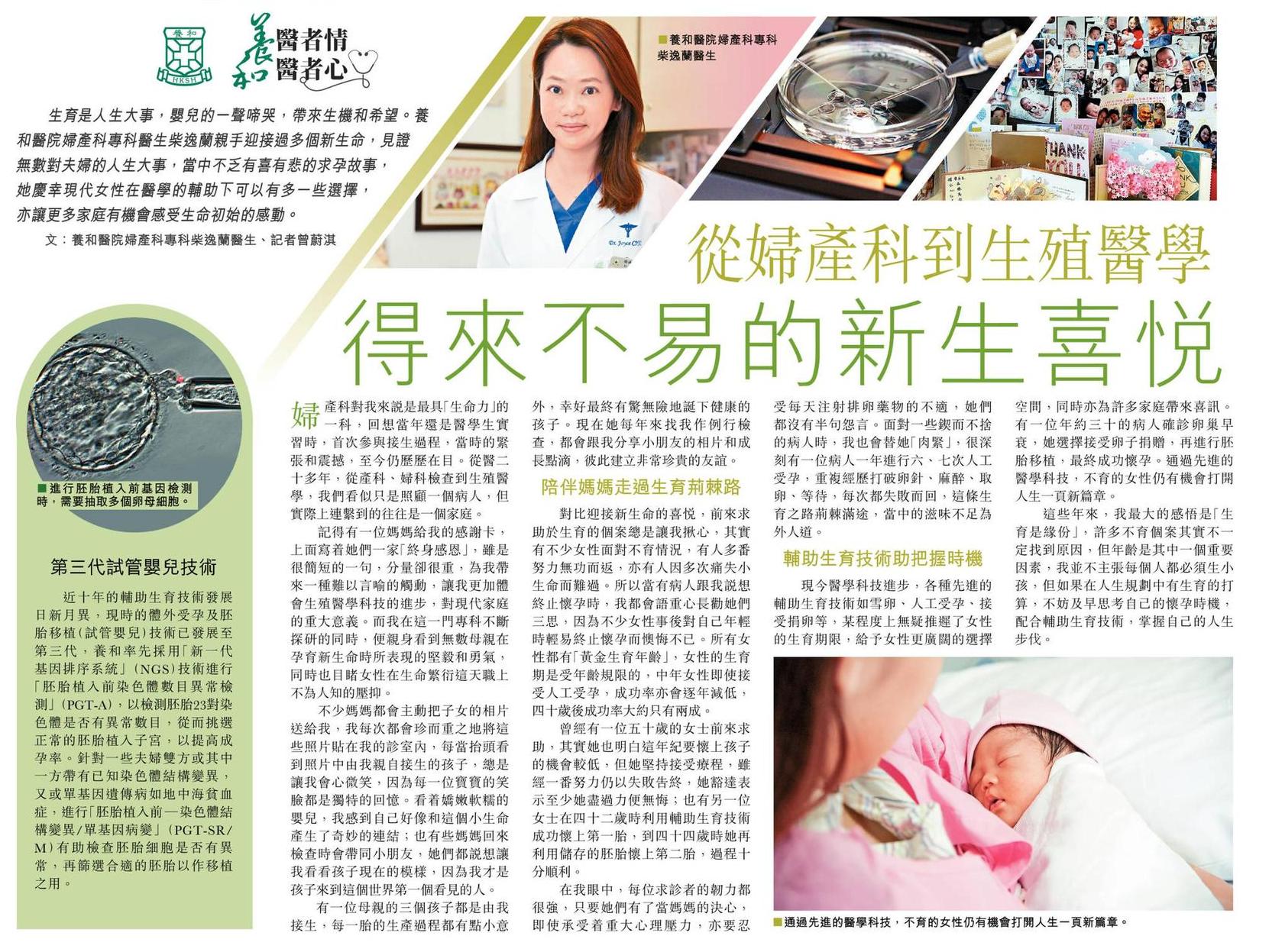 [2023-01-03從婦產科到生殖醫學  得來不易的新生喜悅 - 柴逸蘭醫生 (網頁版)